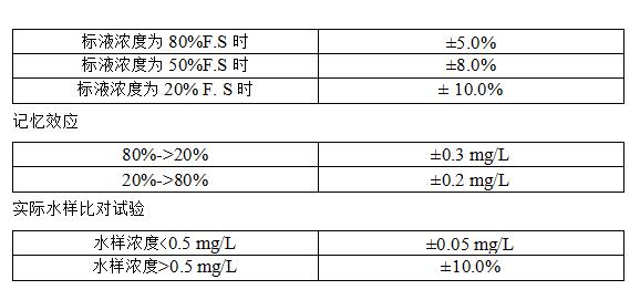 測定下線:0.05mg/L(示值誤差±30%)零點(diǎn)漂移:±5.0%